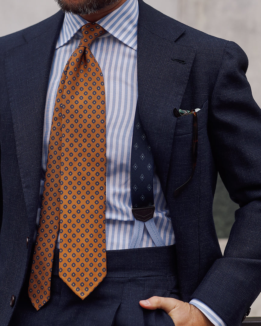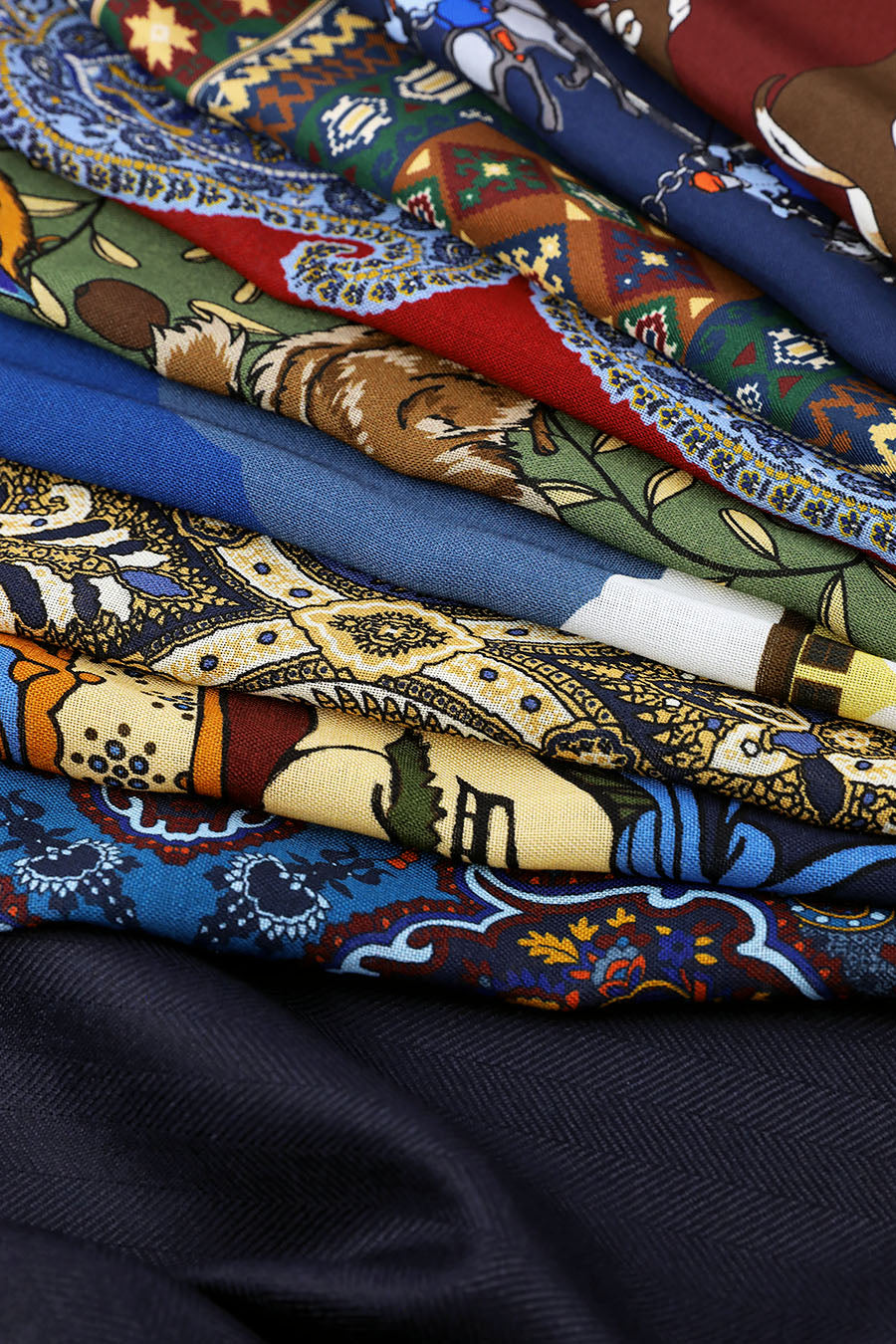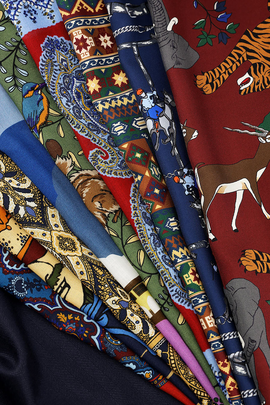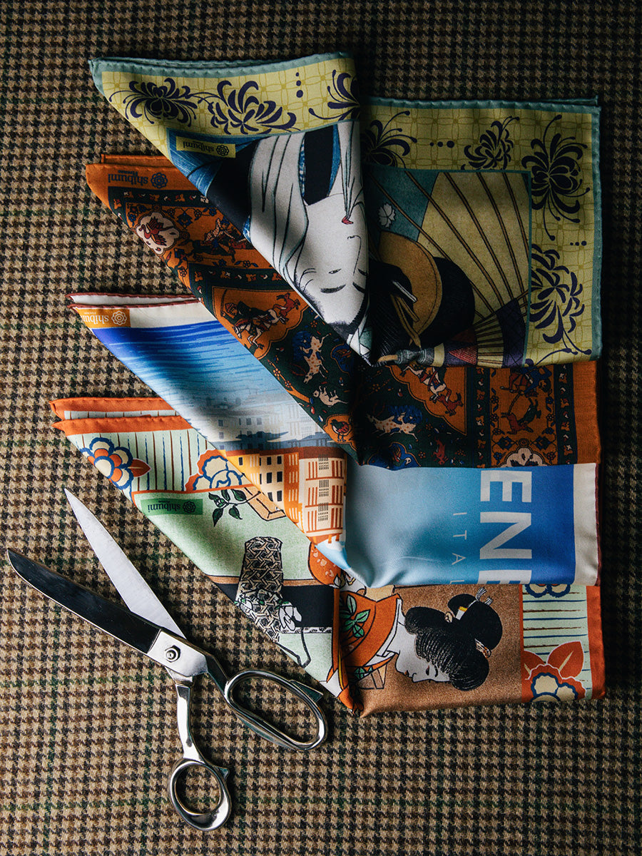 We've just received our new spring/summer pocket square collection, featuring silk, wool/silk, and vintage kimono silk. The collection includes colorful prints that are easy to pair with your favorite fresco suits and linen jackets. Printed in Macclesfield and Kyoto, hand-rolled in Florence.