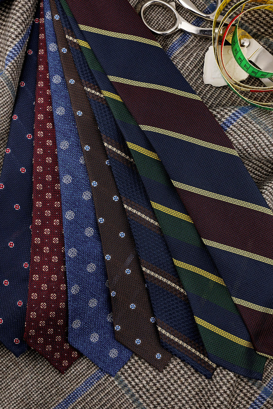Handmade ties in repp, cashmere, wool, grenadine and jacquard. Woven in Como, Italy and Kyoto, Japan. Sewn by hand in Florence.