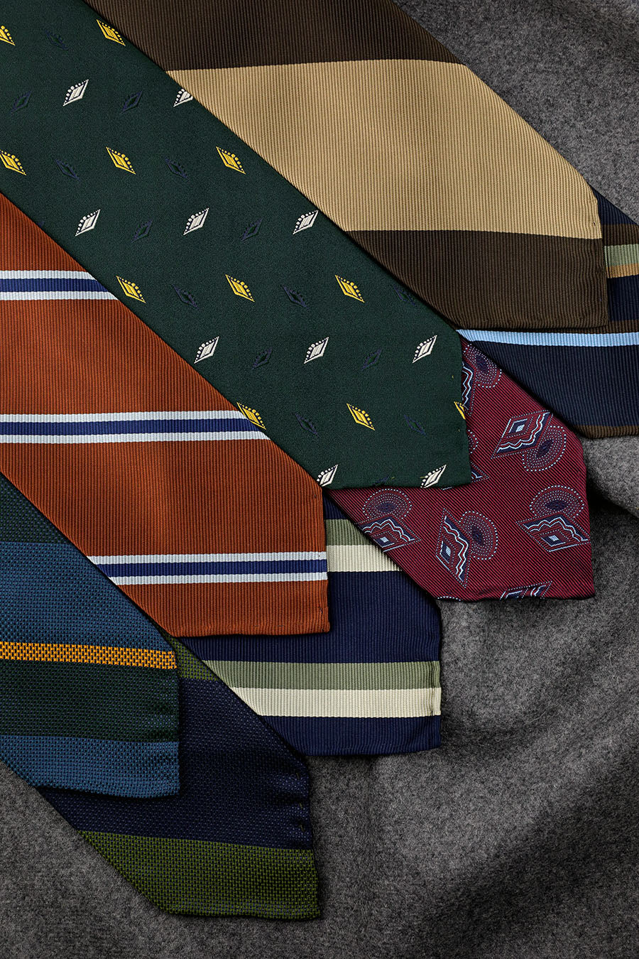 Handmade ties in repp, cashmere, wool, grenadine and jacquard. Woven in Como, Italy and Kyoto, Japan. Sewn by hand in Florence.