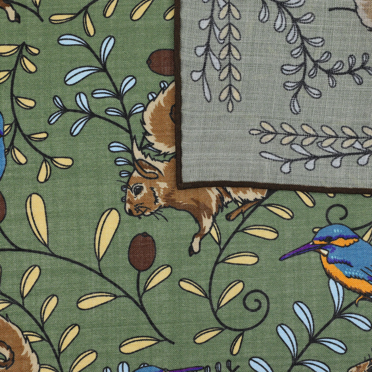 Animal Motif Wool / Silk Pocket Square - Army - 40x40cm