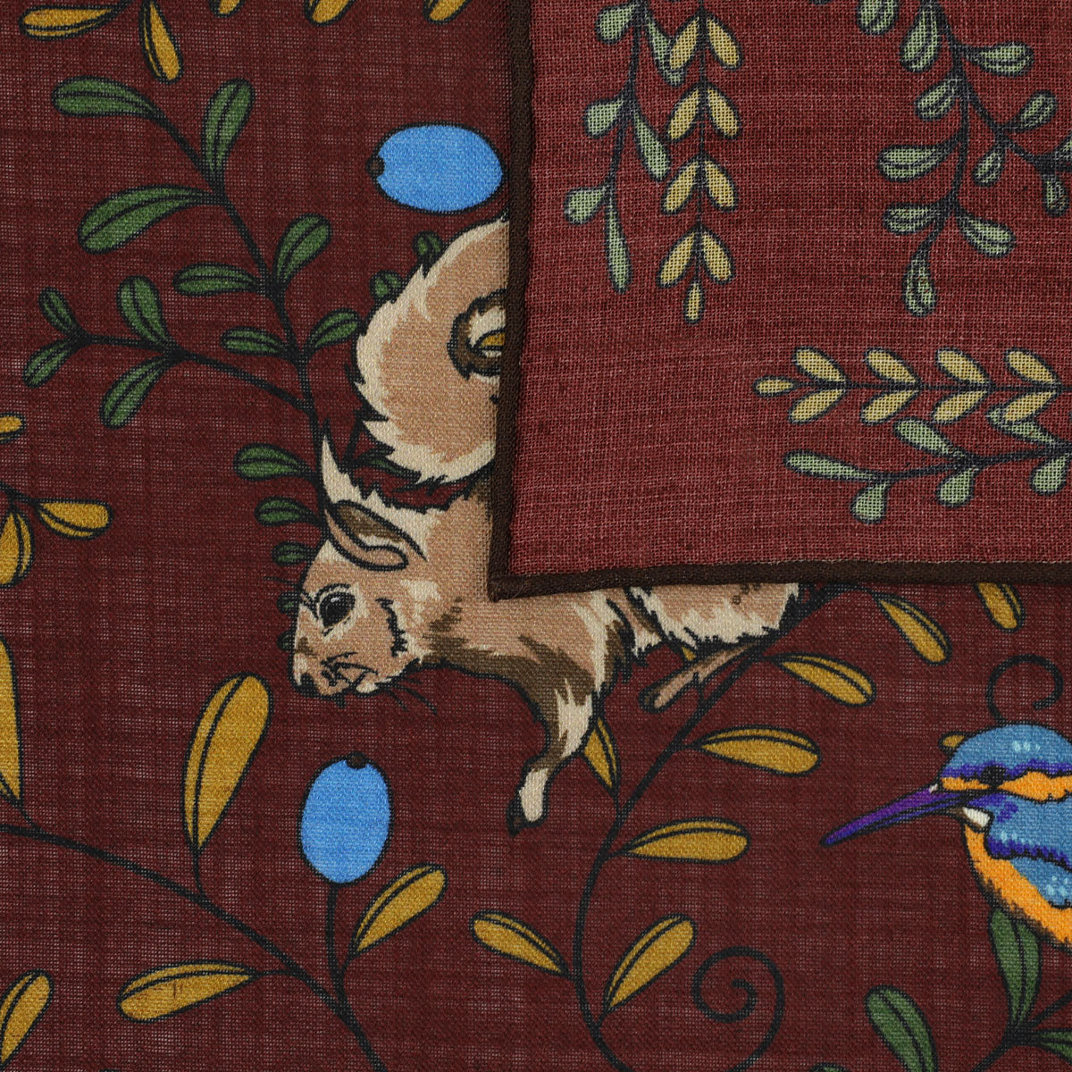 Animal Motif Wool / Silk Pocket Square - Burgundy - 40x40cm