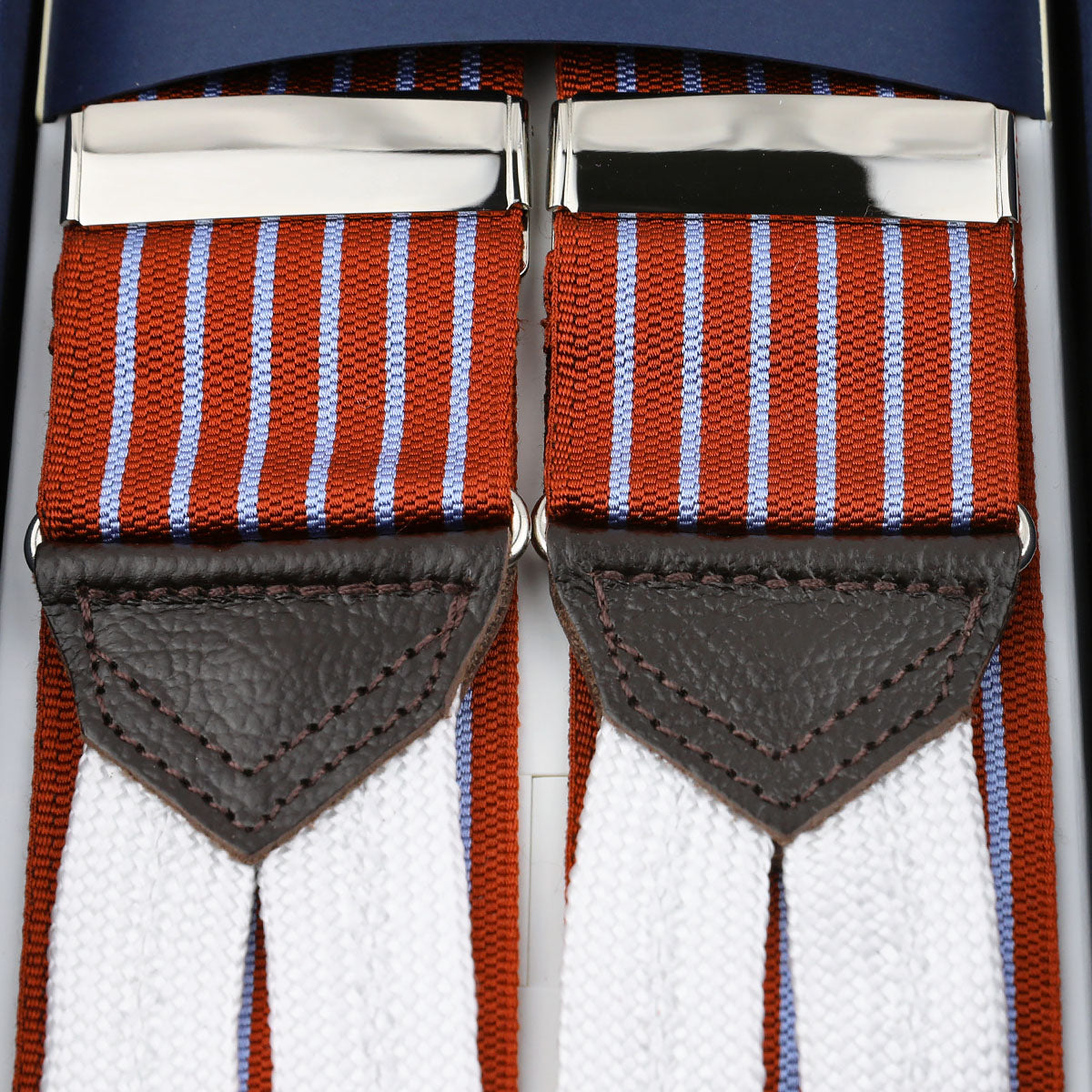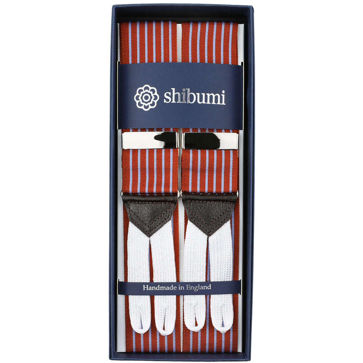 Made in a small, traditional manufactory in the heart of the UK with more than 200 years of experience. Our braces combine the best of British craftsmanship with classic, timeless designs. From traditional boxcloth felt in a variety of colors (the same material, by the way, that is also used in world-class pool tables), our beloved barathea to seasonal variants in wool or bamboo, made in cooperation with the best cloth mills of the world: We make sure to offer you the right braces for every occasion and style. Braces are by far the most comfortable method to keep one’s pants up. Since braces are hanging from the shoulders, there is no uncomfortable pulling at the waist and they help you to improve the drape of your trousers.