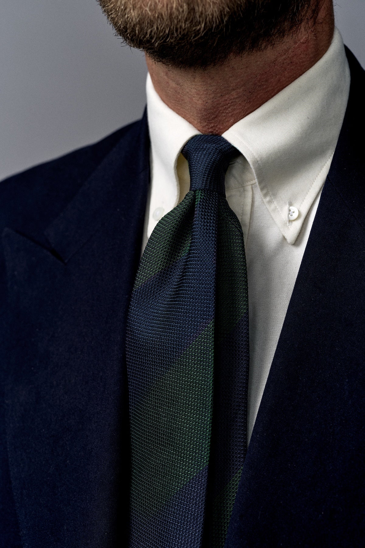 Block Stripe Grenadine / Garza Fina Silk Tie - Navy / Forest Green