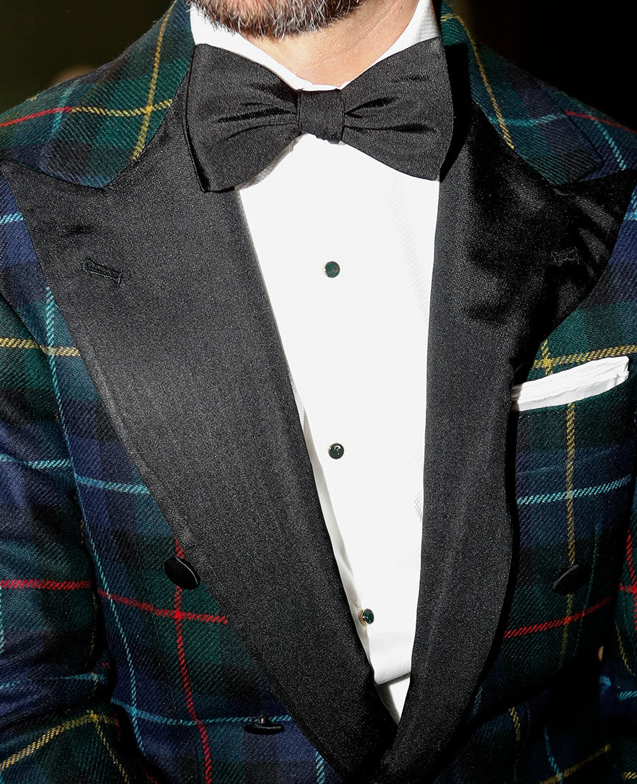 Black bow-tie made from barathea silk, 5cm high in butterfly shape. A tuxedo calls for classic restraint and this bow-tie is the very embodiment of that. Together with our black cummerbund, white moiree braces and linen pocket square the perfect companions for the big night.