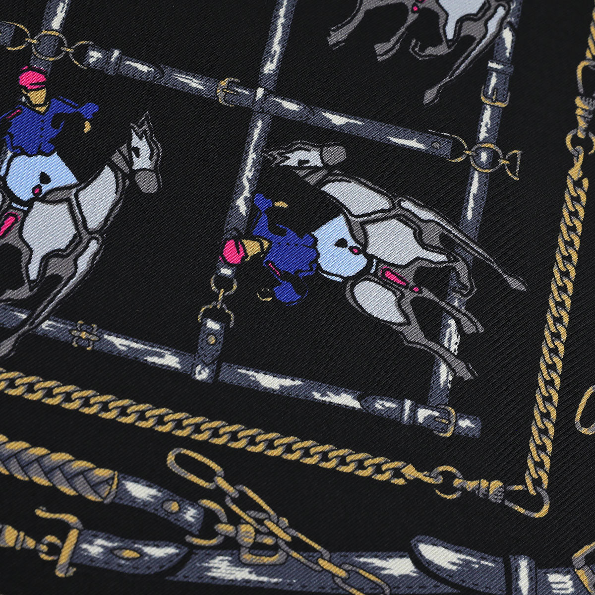 Equestrian Motif Silk Pocket Square - Black - 40x40cm