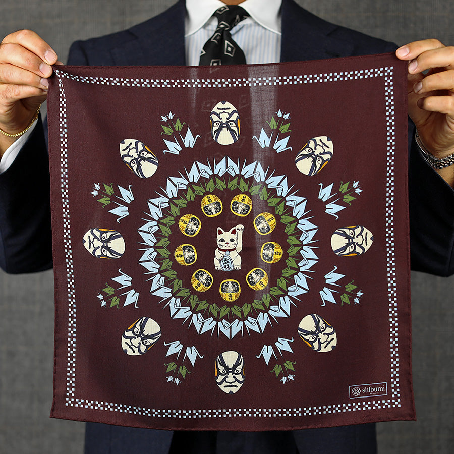 Fortune Motif Wool / Silk Pocket Square - Burgundy - 40x40cm