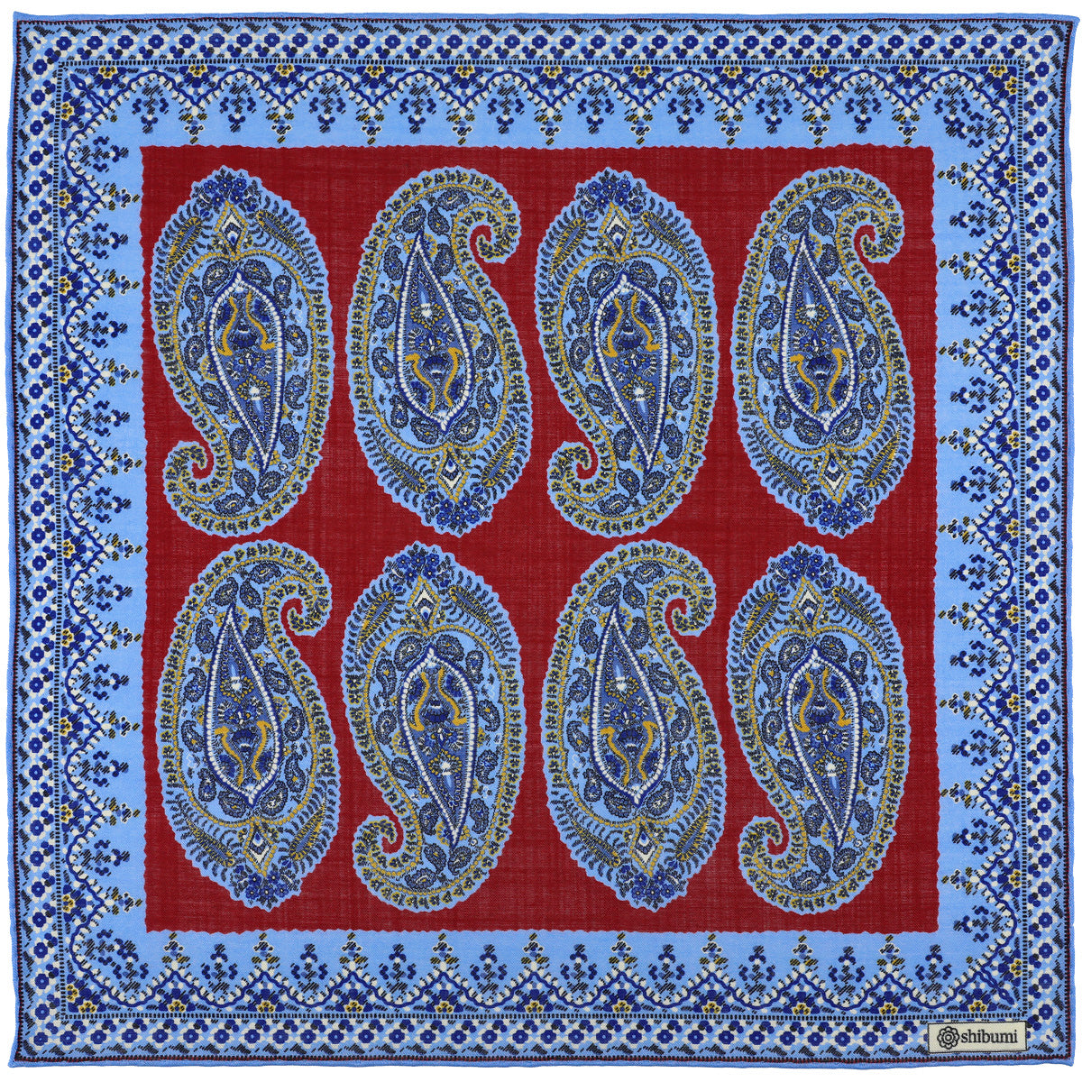 Paisley Motif Wool / Silk Pocket Square - Red - 40x40cm
